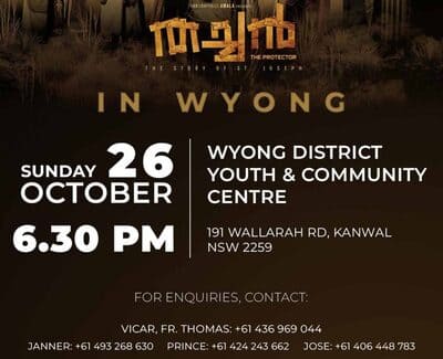 കൂടുതല് വിവരങ്ങള്ക്ക് വികാരി ഫാ. തോമസ് (Phone: +61 436969044), പ്രിന്സ് (Phone: +61 424243662), ജോസ് (Phone: +61 406448783) എന്നിവരെ ബന്ധപ്പെടുക.
