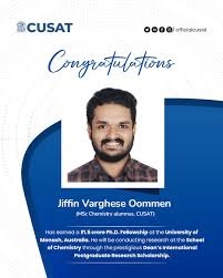 ഓസ്ട്രേലിയയിലെ മൊണാഷ് സർവകലാശാലയുടെ ഫാക്കൽറ്റി ഓഫ് സയൻസ് ഡീൻസ് ഇന്റർനാഷനൽ പോസ്റ്റ് ഗ്രാജ്വേറ്റ് റിസർച് സ്കോളർഷിപ്പിനു കോട്ടയം പുതുപ്പള്ളി സ്വദേശി ജിഫിൻ വർഗീസ് ഉമ്മൻ അർഹനായി.