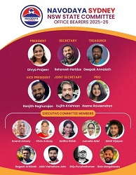 നവോദയ സിഡ്നി വാർഷിക ജനറൽ യോഗം 2025 സെപ്റ്റംബർ 27-ന് വെൻറ്റ്വർത്ത്വിൽ റെഗ് ബേൺ കമ്മ്യൂണിറ്റി സെന്ററിൽ നടന്നു.അംഗങ്ങൾ, പ്രവർത്തകർ, കമ്മ്യൂണിറ്റി അംഗങ്ങൾ എന്നിവർ പങ്കെടുത്ത യോഗത്തിൽ സംഘടനയുടെ പ്രവർത്തനങ്ങൾ വിലയിരുത്തുകയും ഭാവിയിലേക്ക് ദിശ നിർണ്ണയിക്കുകയും ചെയ്തു.
